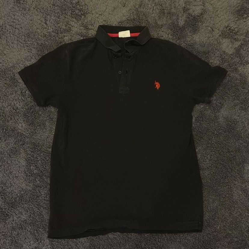 Düğmeli ve yakalı siyah erkek polo tişört, kısa kollu ve baskılı küçük logo detaylı. Yumuşak ve sıcak kumaştan, günlük sokak stili için uygun.