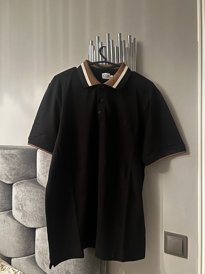 Düğmeli yakalı, kısa kollu siyah erkek polo tişört.rahat kesim ve günlük kullanım için uygun.