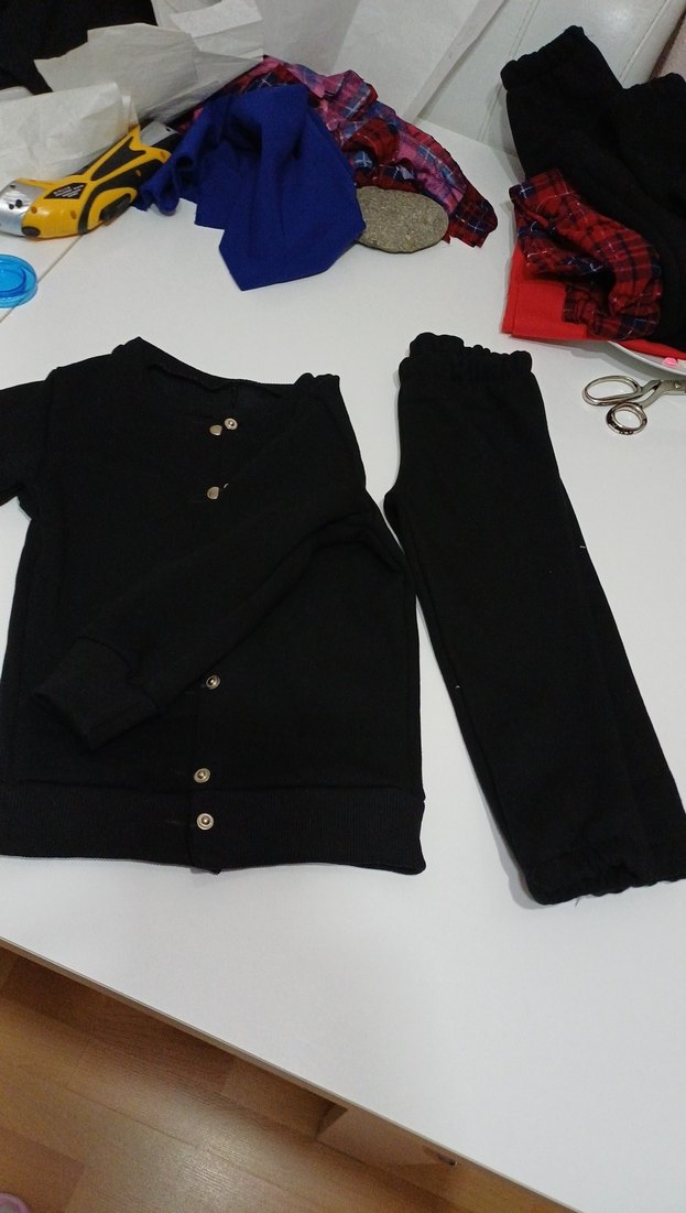 Düğmeli, siyah erkek sweatshirt ve eşofman takımı, bol kesim ve yumuşak, sıcak kumaştan üretilmiştir. Düz tasarımı ve bisiklet yaka ile trend rahat stil sunar.