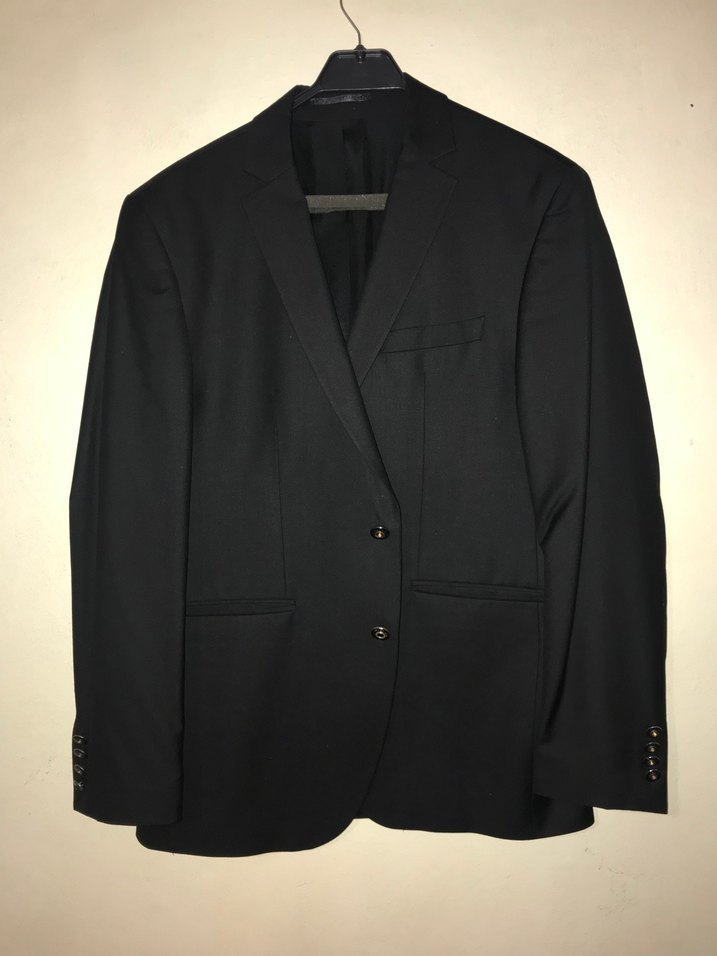 Marka temsili. Düğmeli ön kısmı ve kırmalı yakası olan siyah erkek takım ceketi. Uzun kollu, normal kesim ve desen içermeyen klasik iş stili. Ön düğmelerinin taşının rengi değişik. Bir de sağ kolunun ilk düğmesinin taş rengi. Defosuz #erkekceketi #ceket