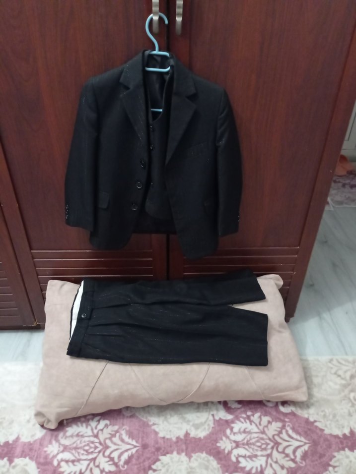 5 .6 yaş çocuk takım 3 parça Düğmeli, normal boy, klasik kesim siyah erkek takım elbise. uzun kollu ve desen içermeyen sade bir tasarıma sahiptir. ️