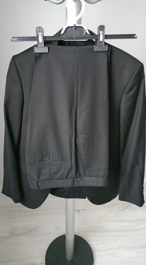 Siyah renkli erkek takım elbise, normal boy, düğmeli ve kesimli yakalıdır. Uzun kollu, iş ortamı için uygun sade ve düz tasarımdadır. ️ikisi birlikte satılmaktadır ceket boy 72omuz 45 pantalon boy100bel 42 cm dir