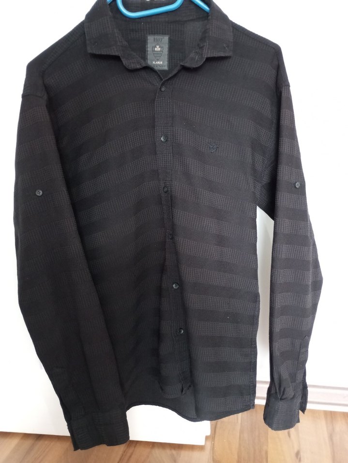 Düğmeli önü ve kesik yaka detaylı siyah erkek gömleği, yumuşak sentetik kumaştan üretilmiştir. Uzun kollu ve regular fit kesime sahiptir, günlük kullanıma uygundur.