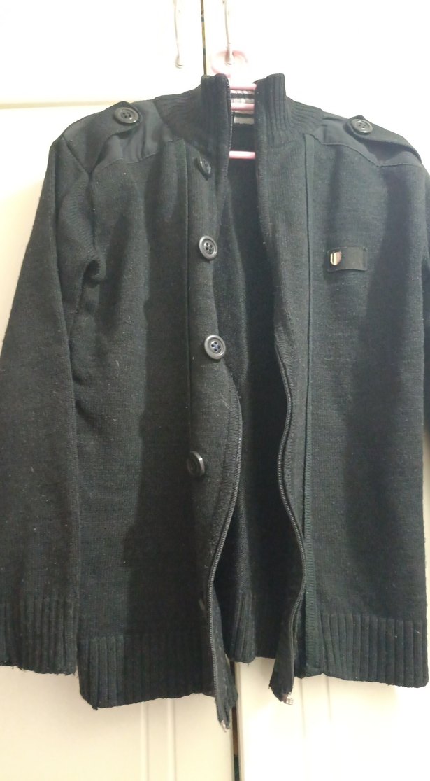 Düğmeli, siyah erkek yün ceket, normal boyda ve kesim olarak regular fit. Uzun kollu, yakası notched lapel tarzında, günlük rahat sokak stili için uygundur. fermuari bozuk