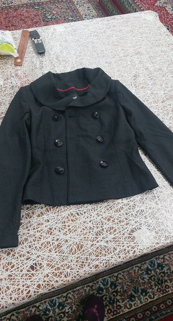Düğmeli ve normal boyda, siyah goth tarzı midi ceket. Sentetik kumaştan, uzun kollu ve regular fit.