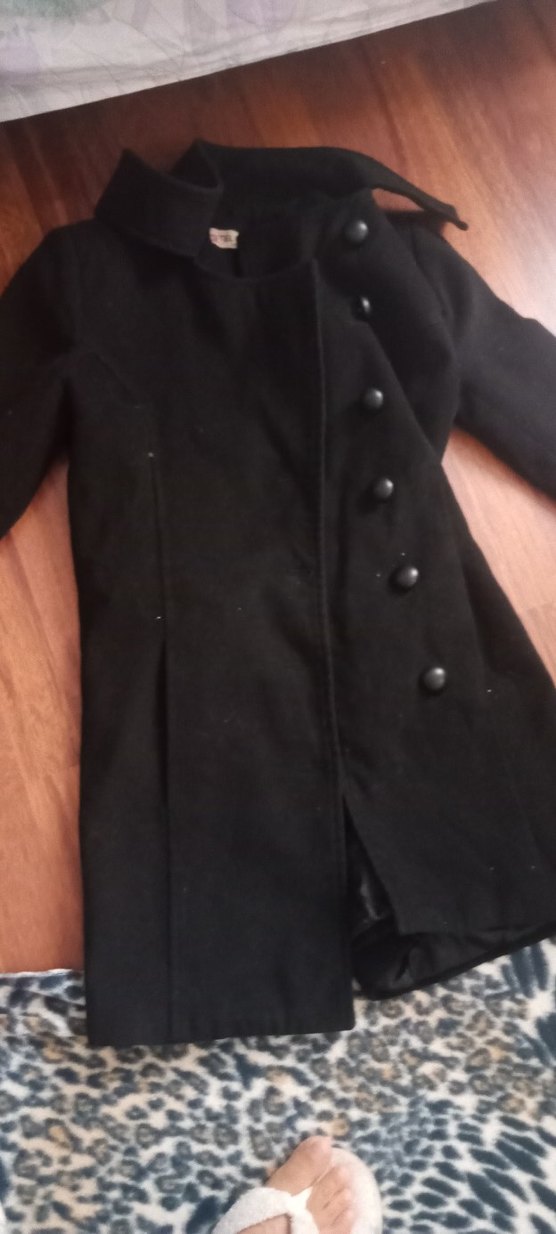 Düğmeli, siyah gotik midi ceket, halter yaka ve askılı kollara sahip, sentetik kumaştan üretilmiştir. Romantik akşamlar için uygundur.