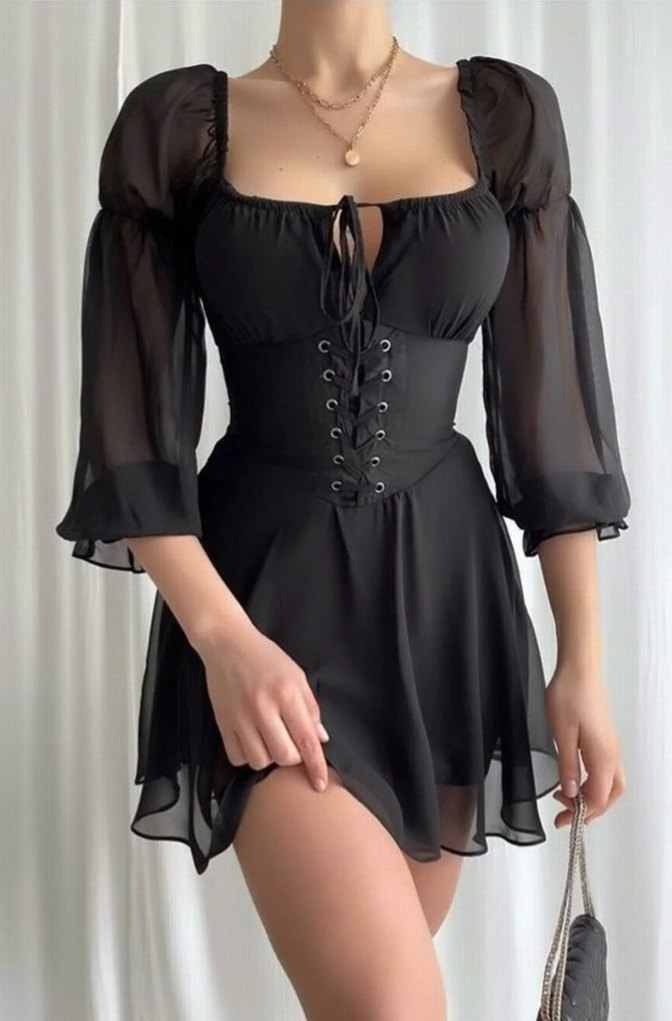 Korseli Siyah Gotik Mini Elbise