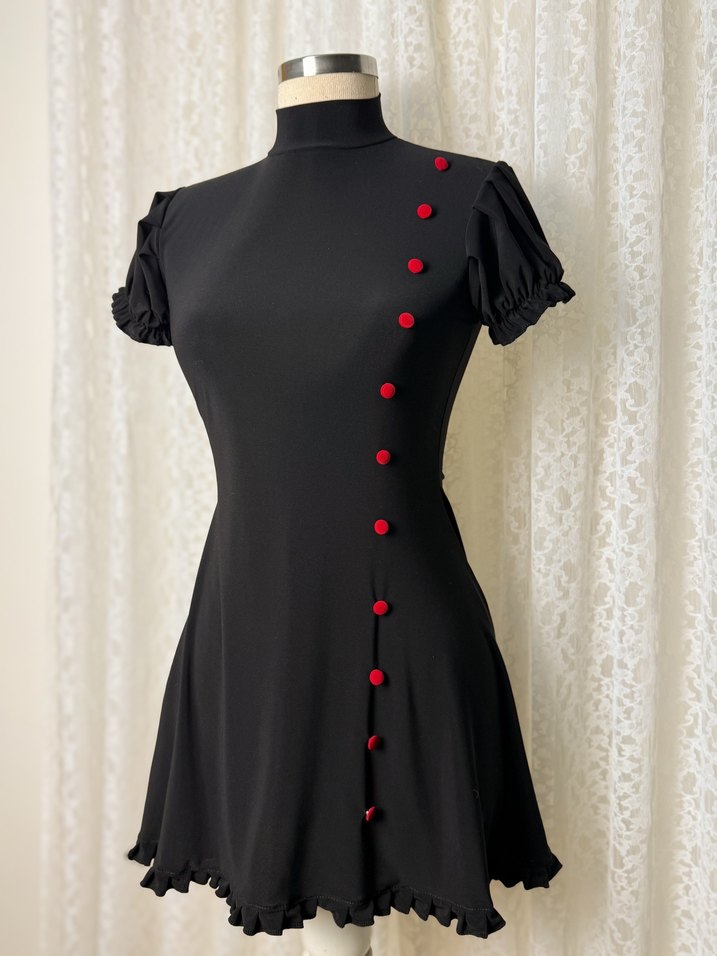 Düğmeli Siyah Gotik Mini Elbise