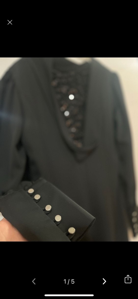 Düğmeli uzun kollu, V yaka siyah tuxedo. Nakış detayları ve regular fit ile ofis kullanımına uygun uzun kesim.