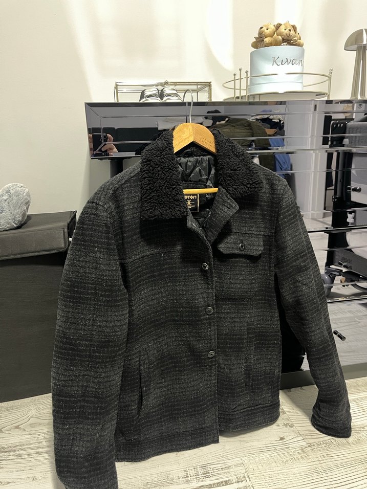 Düğmeli siyah gri Erkek Midi Kaban bir tane düğme eksik