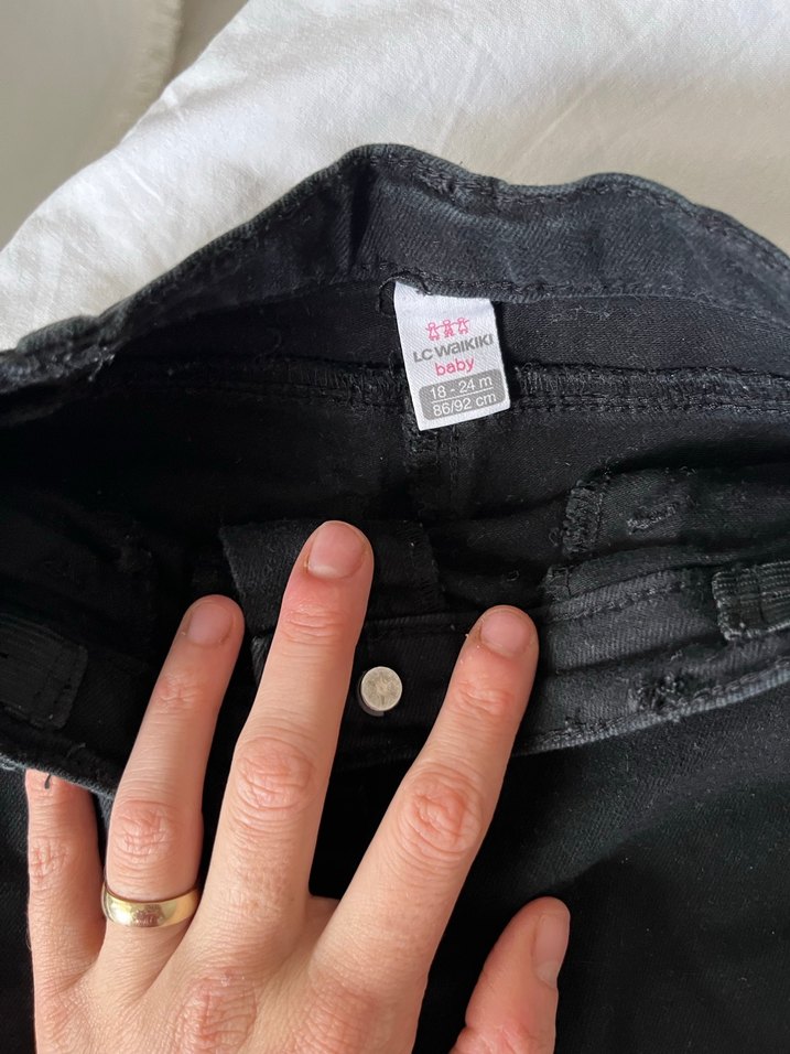 Düğmeli, siyah hamile kot pantolon, normal boyda ve rahat bir kullanıma uygun şekilde tasarlanmıştır.