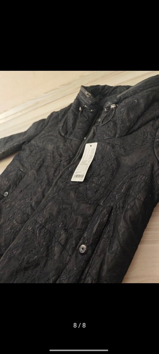 Düğmeli önü, işlemeli detayları ve kesik yaka ile siyah uzun kadın ceketi. Sentetik kumaştan, rahat kesim, günlük kullanıma uygun.
