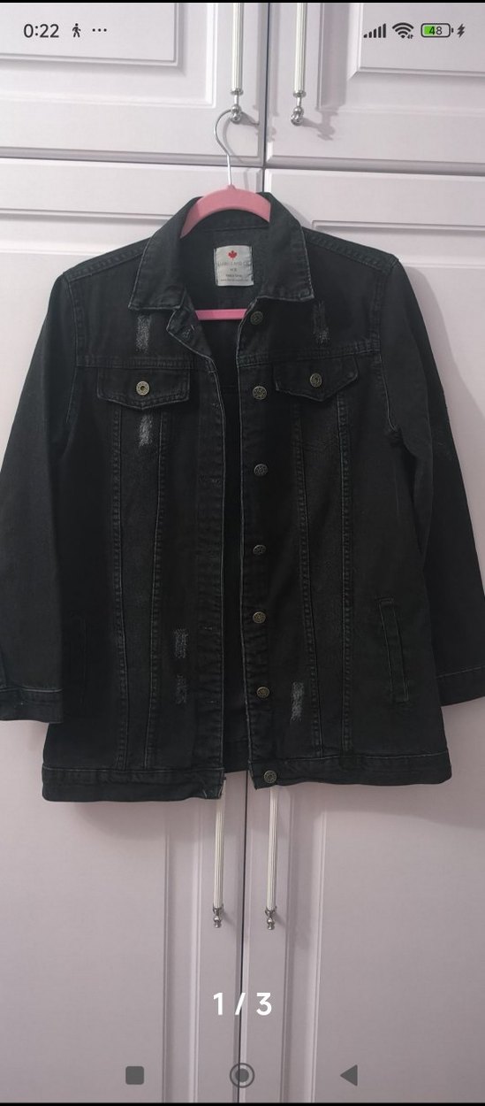 Düğmeli, siyah kot ceket. Uzun kollu, normal kesim ve midi boyda. Notlu yaka detayı ve günlük kullanıma uygun.