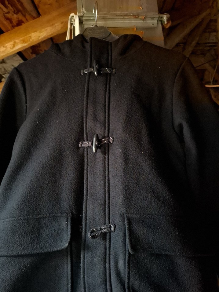 Siyah, düğmeli ve yumuşak dokulu kaban, kesimi vücuda oturur. kız yada erkek çocuk için uygundur 12 13 14 yaş çocuk için