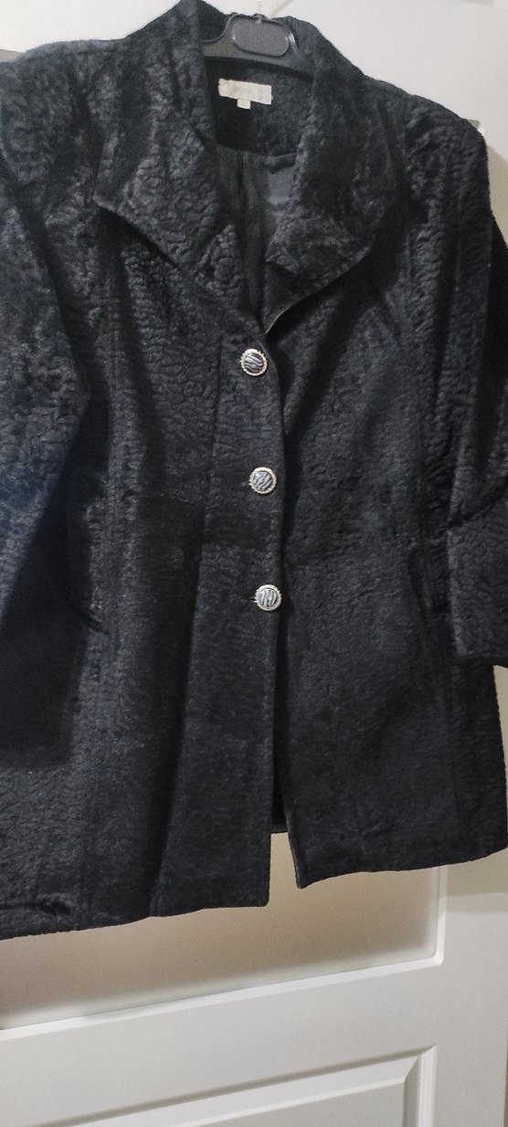 Siyah kabanı, düğmeli ve kesimli yaka detaylıdır. Uzun kollu ve bol kesimdir, ofis için uygundur, Paris tarzı goth stilindedir.