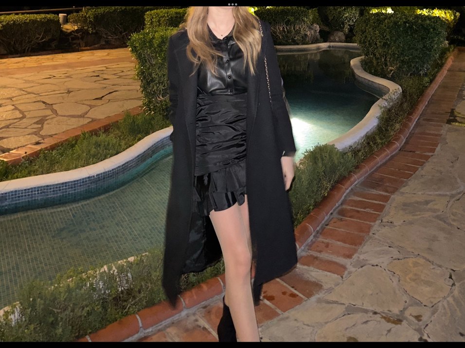 Düğmeli ve klasik yakalı siyah kaban, sade ve şık bir görünüm sunar.