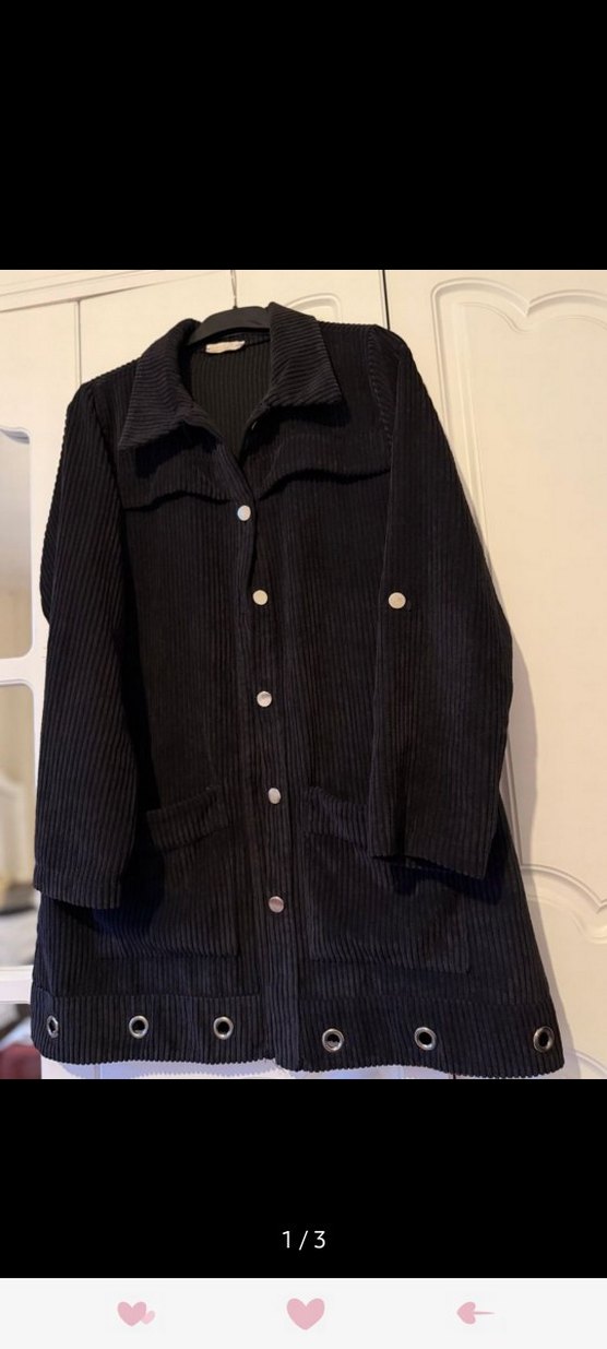 Düğmeli, uzun siyah kadife kaban, kesik yaka ve uzun kolludur. Düzenli kesimiyle gotik Paris tarzını yansıtır.