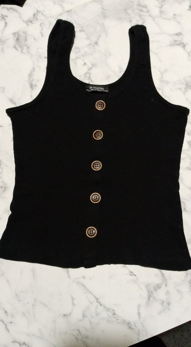 Düğmeli Siyah Kadın Atlet