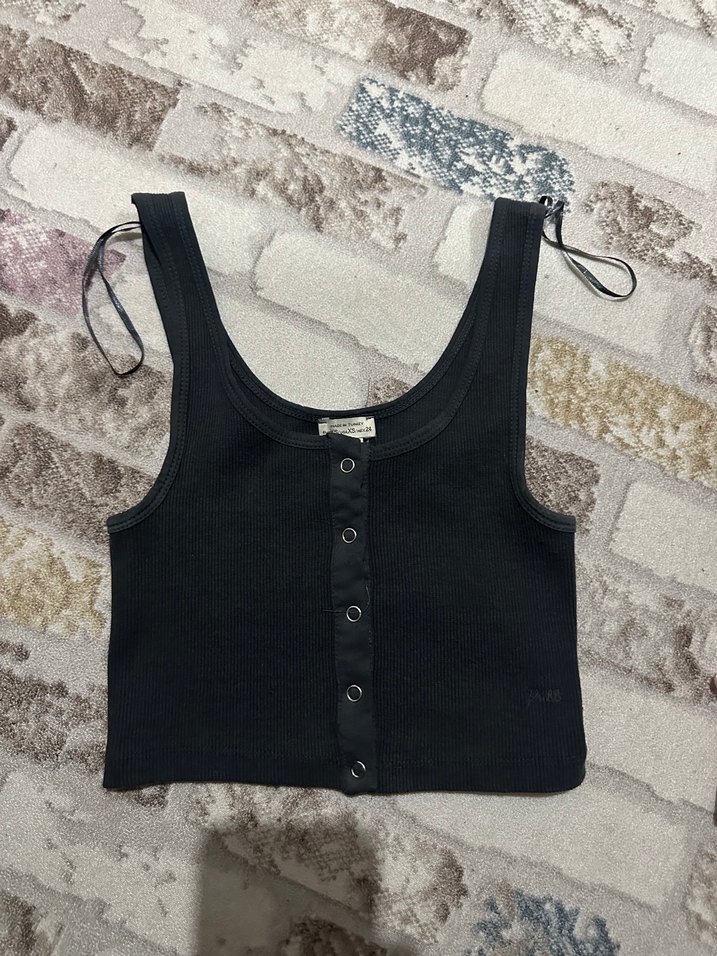 Düğmeli Siyah Kadın Atlet