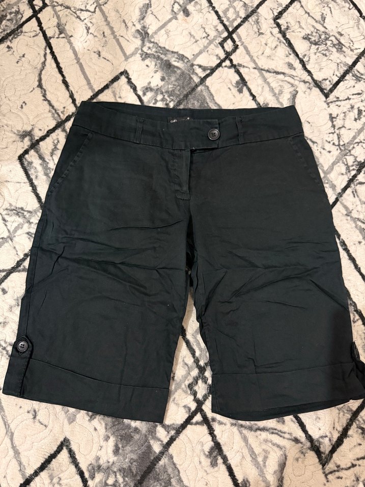 Düğmeli Siyah Kadın Bermuda Şort