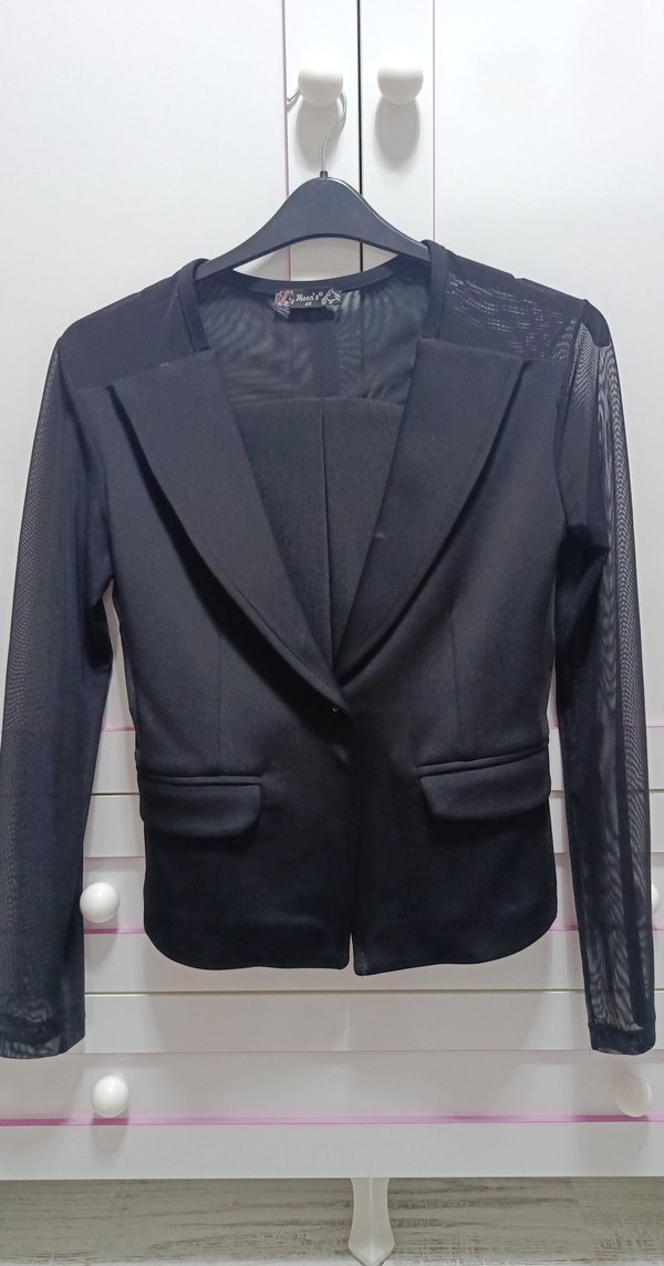 Düğmeli siyah blazer ceket kolları ve yanları transparan orta boy