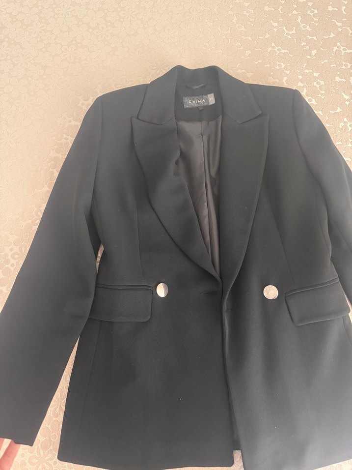 Düğmeli Siyah Kadın Blazer Ceket Pantolon