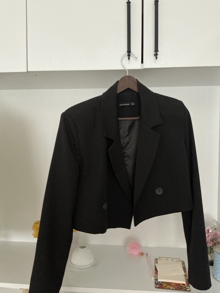 Siyah renkli, düğmeli ve uzun kollu kadın blazer ceket. Regular fit ve notched lapel yakaya sahip, sentetik kumaştan üretilmiştir. Ofis ve günlük kullanıma uygundur. Koton mağazasından aldım toplam 3-4 defa kullandım temiz ve yıpranmamıştır.