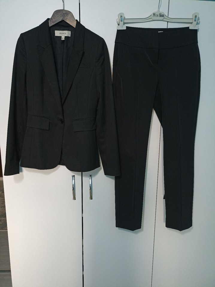 Ceketin iç astarın da yırtıklar mevcuttur görsellere ekledim. Üst beden ceket 34 beden pantolon bedeni 36"dır.Düğmeli, siyah kadın blazer ceket; kırlangıç yaka, uzun kollu ve normal boyda. Ofis ve günlük sokak stiline uygun, sentetik kumaştan üretilmiştir.
