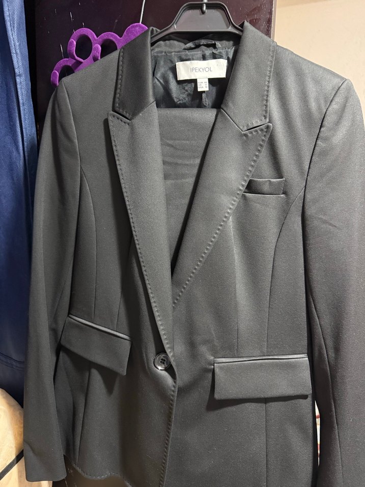 Düğmeli Siyah Kadın Blazer Ceket ve pantolon