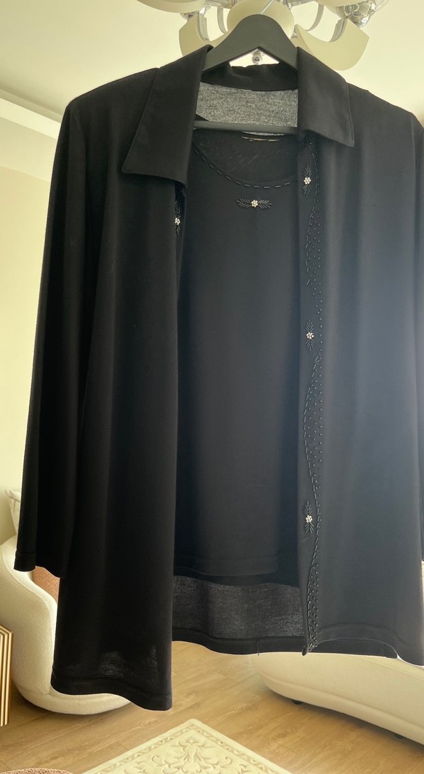Düğmeli, yakalı ve uzun kollu siyah kadın bluz, regular kesim ve ipeksi kumaştan, ofis için uygun minimal gotik tarzda.