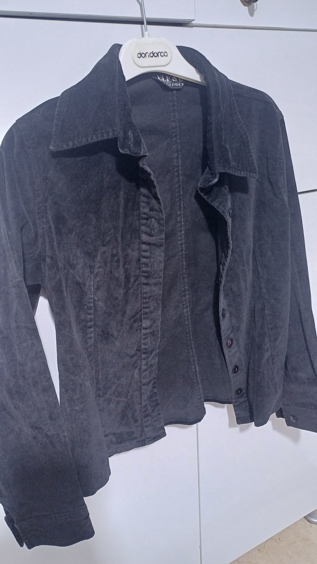 Düğmeli, siyah ceket, uzun kollu, normal boyda ve fitted kesime sahip kadın ceketi. Rahat ve gündelik kullanıma uygundur.