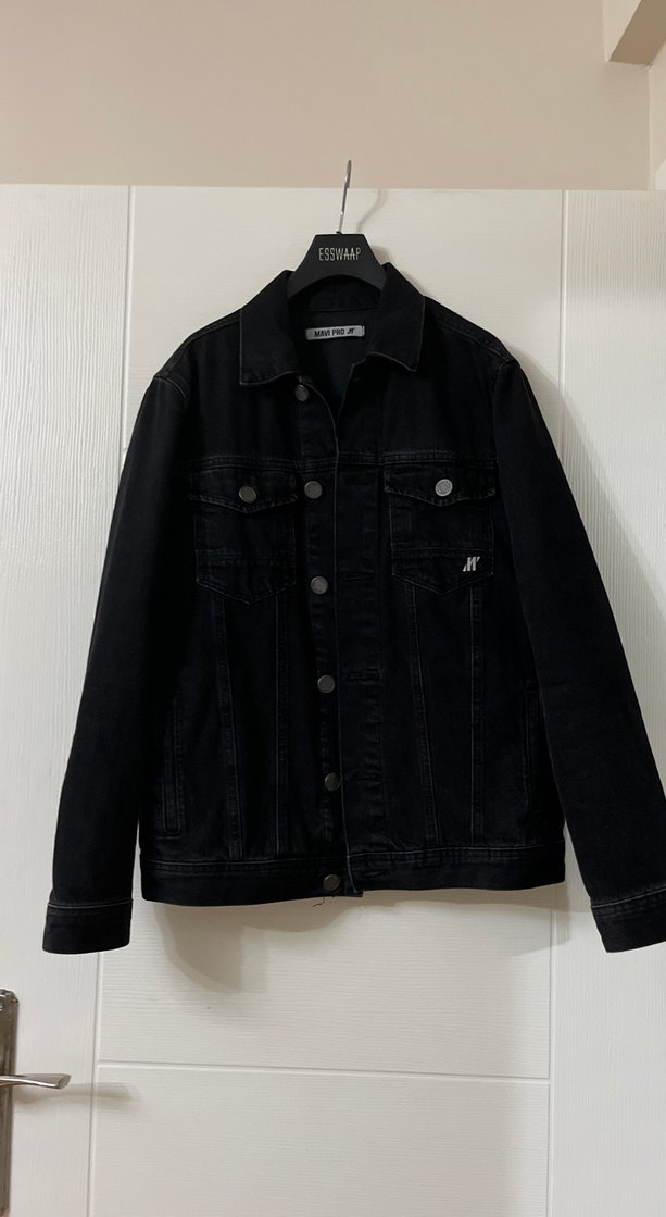 Düğmeli Siyah Denim Ceket