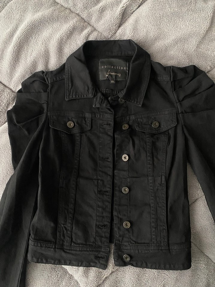 Düğmeli, siyah renkli, uzun kollu, normal uzunlukta ve fitted kesim kadın denim cekettir. Notched lapel yakalı, goth tarzını yansıtan sokak stiline uygundur.