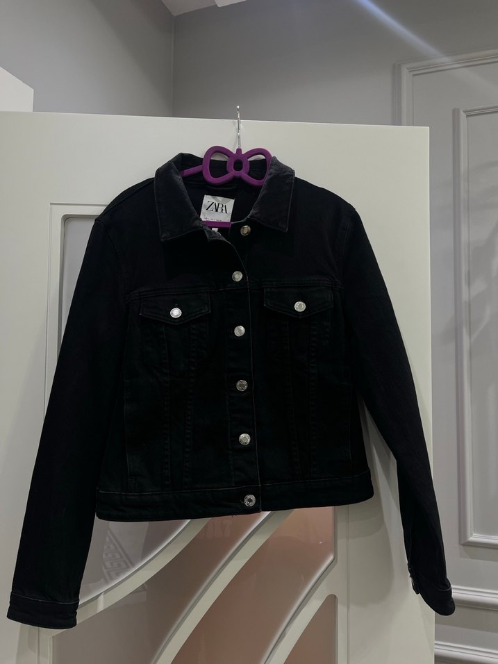 Düğmeli, siyah renkte, uzun kollu ve yakalı, fitted kesim kadın denim ceket. Günlük rahat kullanıma uygun midi boyda ve desensiz. Ürün L beden olmasına rağmen kalıbı biraz küçüktür bilginiz olsun.