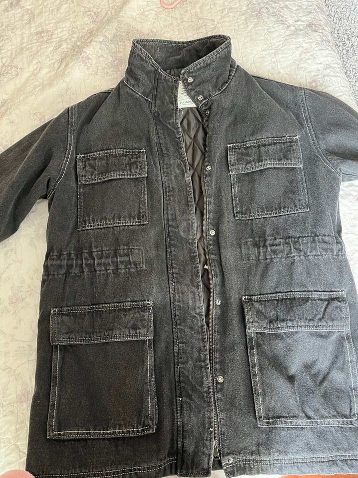Düğmeli, çok cepli siyah denim ceket, yakalı ve uzun kolludur. Rahat kesimiyle günlük kullanıma uygundur. İçi çok kalın sıcacık tutuyor.fermuarı biraz zor çekiliyor o kadar başka bir sorunu yoktur.