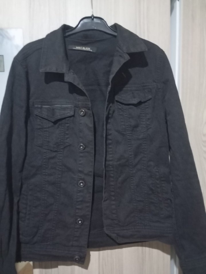 Düğmeli siyah denim ceket, notlu yaka ve uzun kollu. Normal boy ve regular fit ile günlük sokak stili için uygun.