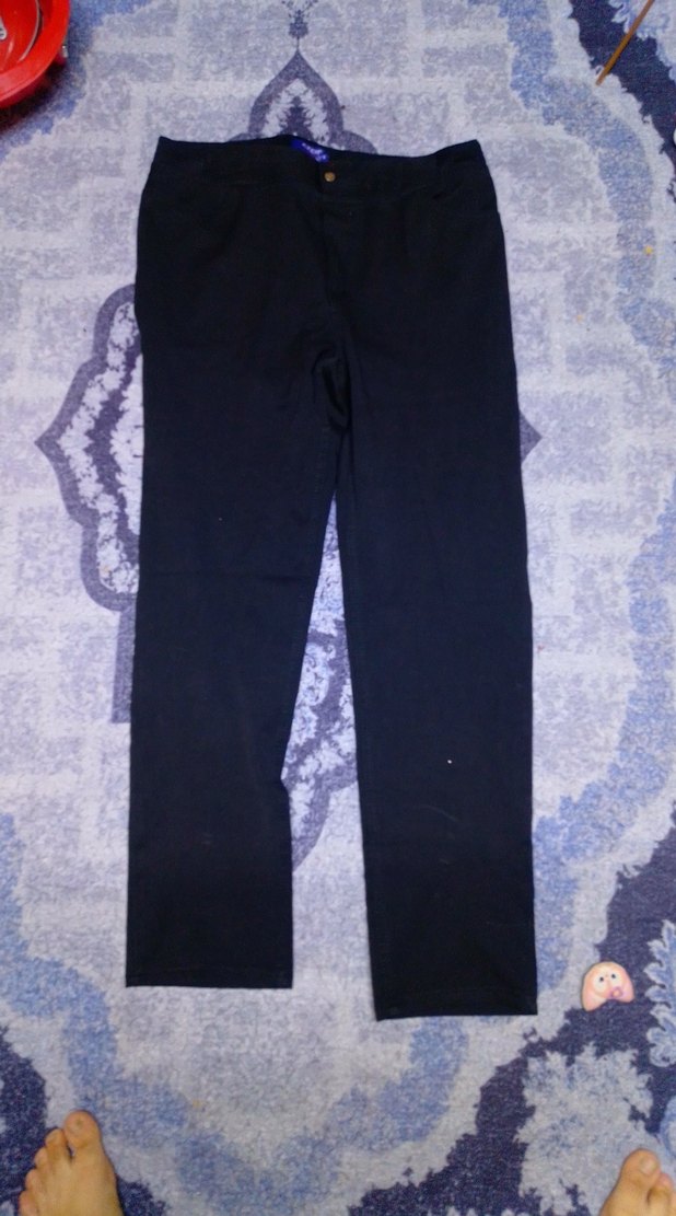 Düğmeli, siyah kadın denim pantolon, normal boy ve regular fit. Günlük sokak stili için uygun, desen içermeyen rahat tasarım.