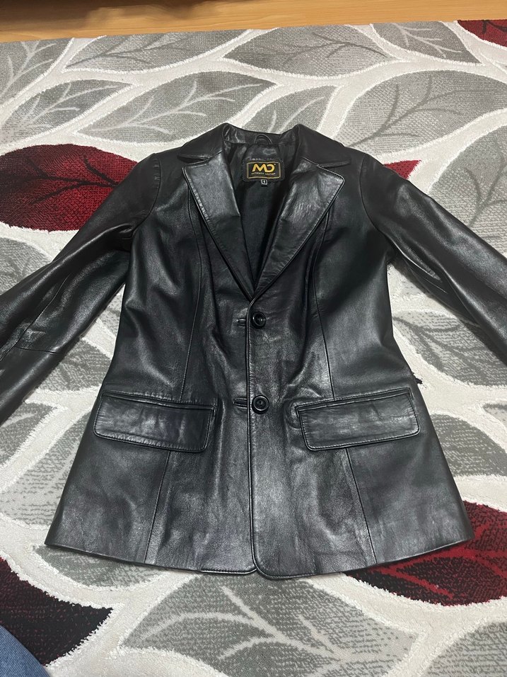 Düğmeli önü, kesik yaka ve uzun kollu siyah kadın deri ceket. Orta boy ve düz kesimle iş ortamına uygun şık bir biker stili sunar. Gerçek deridir hiç giyilmedi beden olmadığı için satıştadır