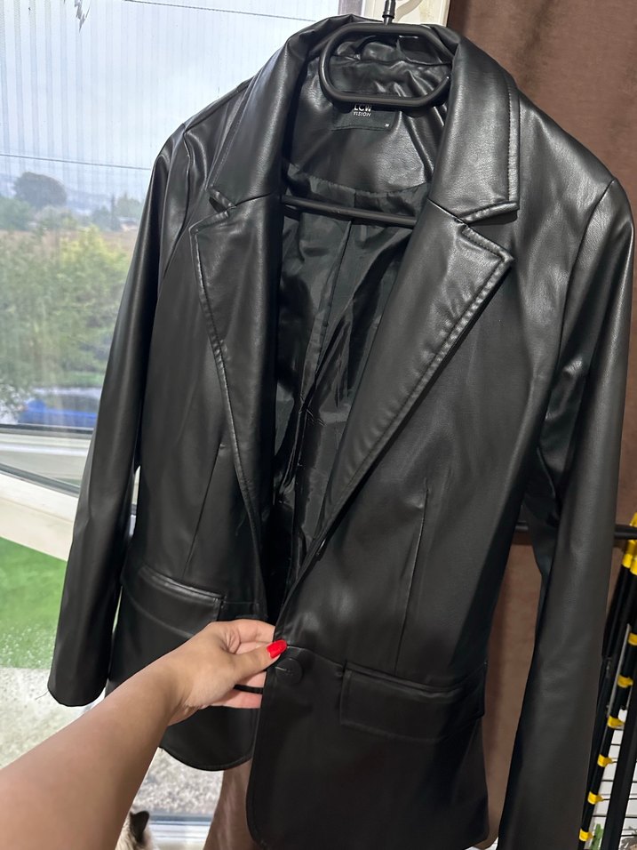 Düğmeli ön kısmı ve klasik yaka detaylı siyah deri ceket. Midi boy, regular fit ve askılı kollara sahip, iş ve günlük kullanıma uygun şık tasarım.