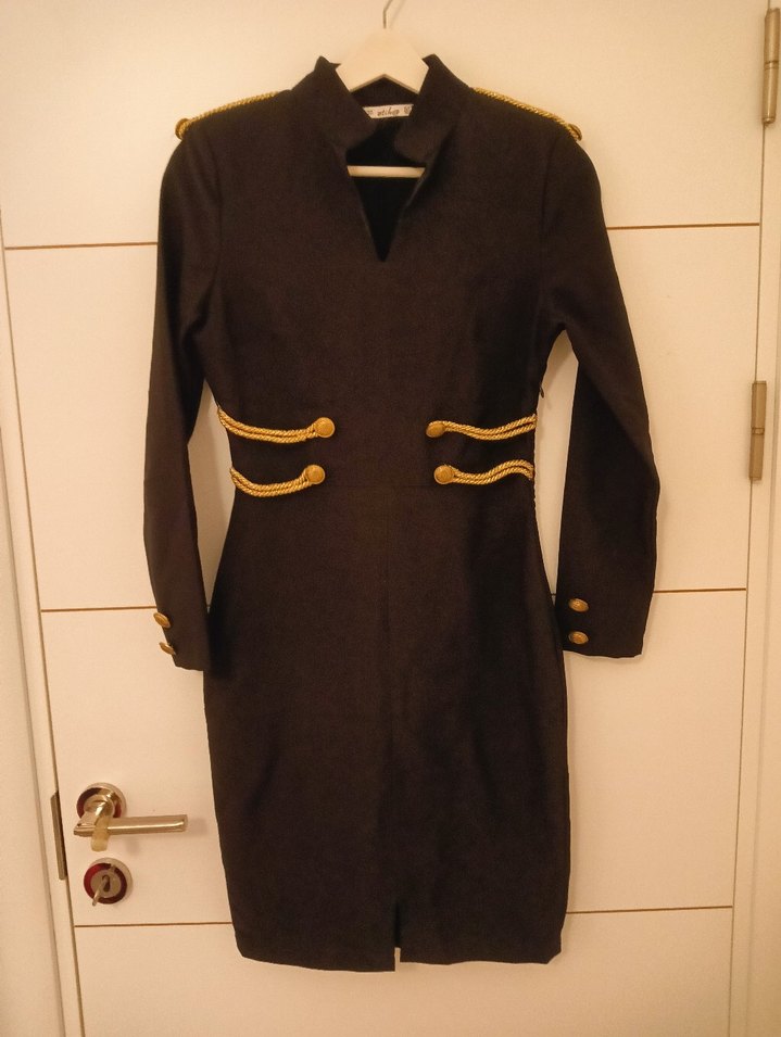 Düğmeli Siyah Kadın elbise