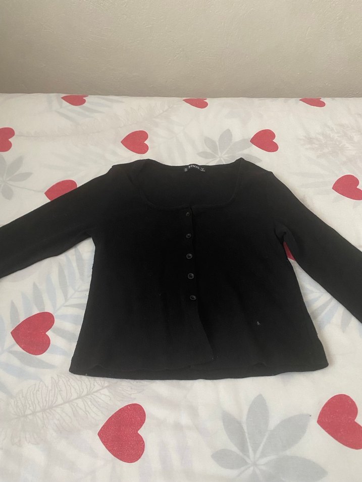 Düğmeli Siyah Kadın Gömlek