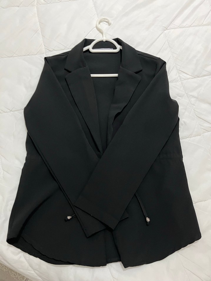 Düğmeli, siyah kadın gömlek, yakası kesik ve uzun kolludur. Normal kesim ve midi boyda, sentetik kumaştan üretilmiştir. Minimalist ve sade tarzıyla ofis kullanımı için uygundur. M/38