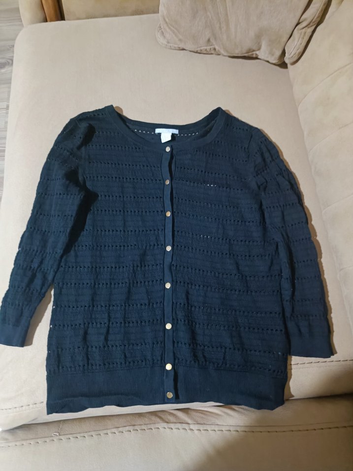 Düğmeli, uzun kollu, yuvarlak yakalı siyah örme kadın hırka. Rahat kesimi ve midi boyu ile gündelik kullanıma uygundur.