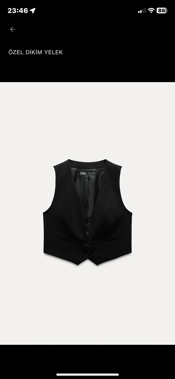 Düğmeli, siyah, kolsuz bu yelek, kesik yakalı ve midi boydadır. Pürüzsüz sentetik kumaştan yapılmış, düzenli kesim ve ofis için uygundur. Yepyeni çok beğenerek aldım ama yakasından dolayı rahat giyemedim o yüzden satıyorum