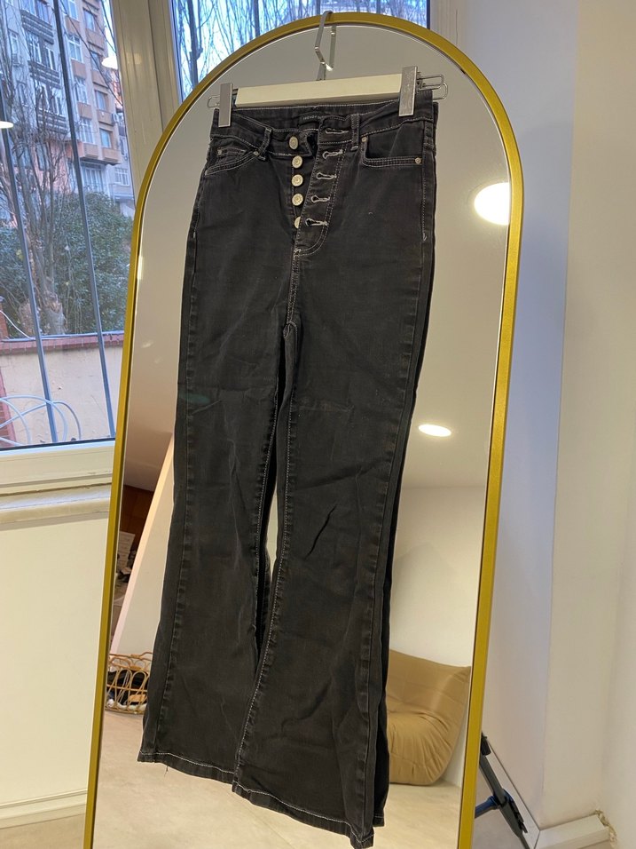 Düğmeli Siyah Kadın Jean