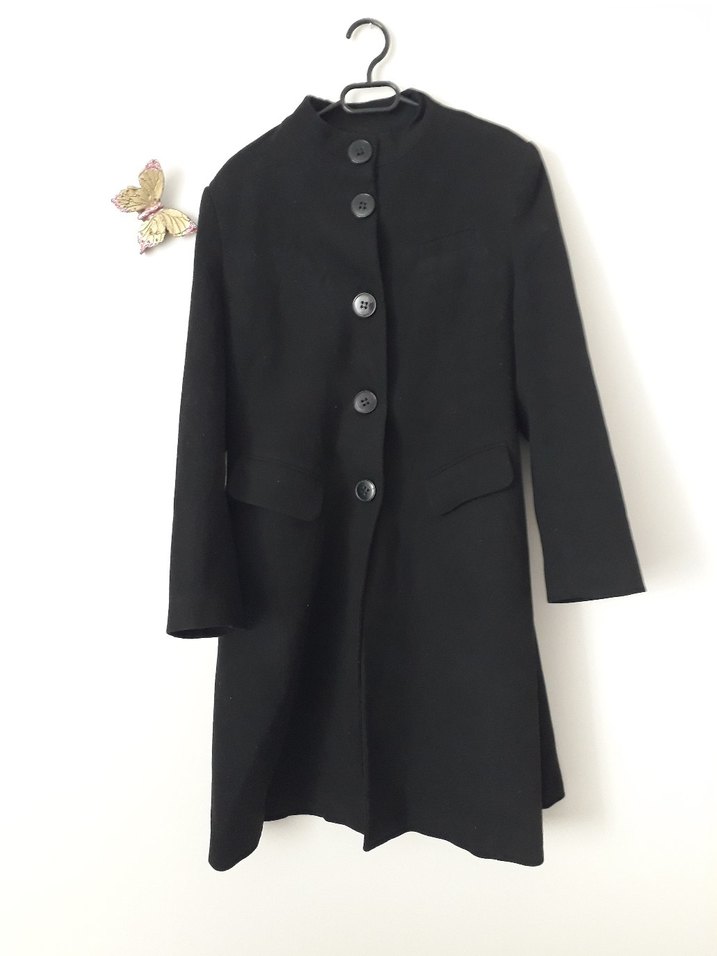 Düğmeli, uzun kollu, siyah kaban,normal kesim. Giyilmiştir. Astarlı ve arkada yırtmacı vardır. 52 beden yazıyor etiketinde. Ölçüleri fotolarda mevcuttur inceleyebilirsiniz.