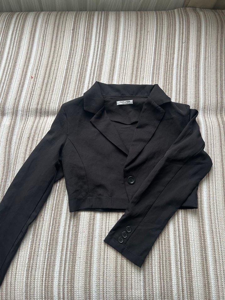 Düğmeli, uzun kollu, keten kumaştan siyah kadın blazer ceket. Normal boyda, regular fit ve ofis için uygun goth tarzında.