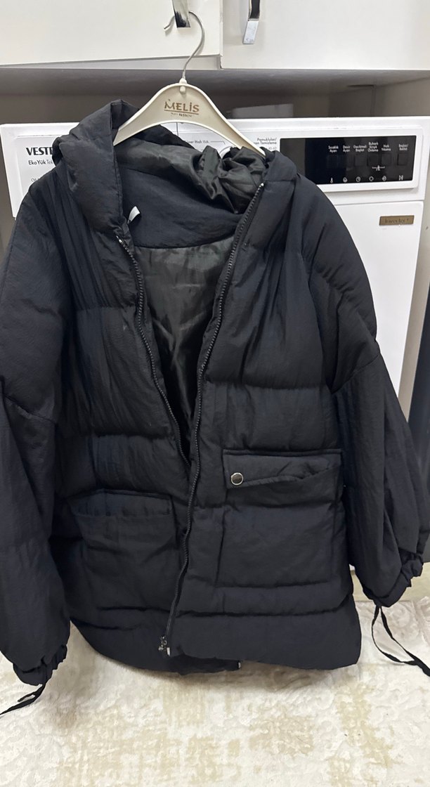 Düğmeli Siyah Kadın Kışlık Midi Mont