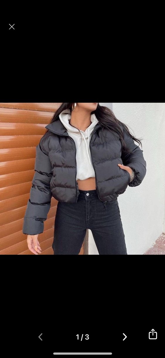 Fermuarlı, uzun kollu, yüksek yakalı siyah kadın kışlık mont. Sıkı kesim ve normal boyda, günlük sokak stili için uygun. ❄️ Sorunsuz sıcak tutuyor