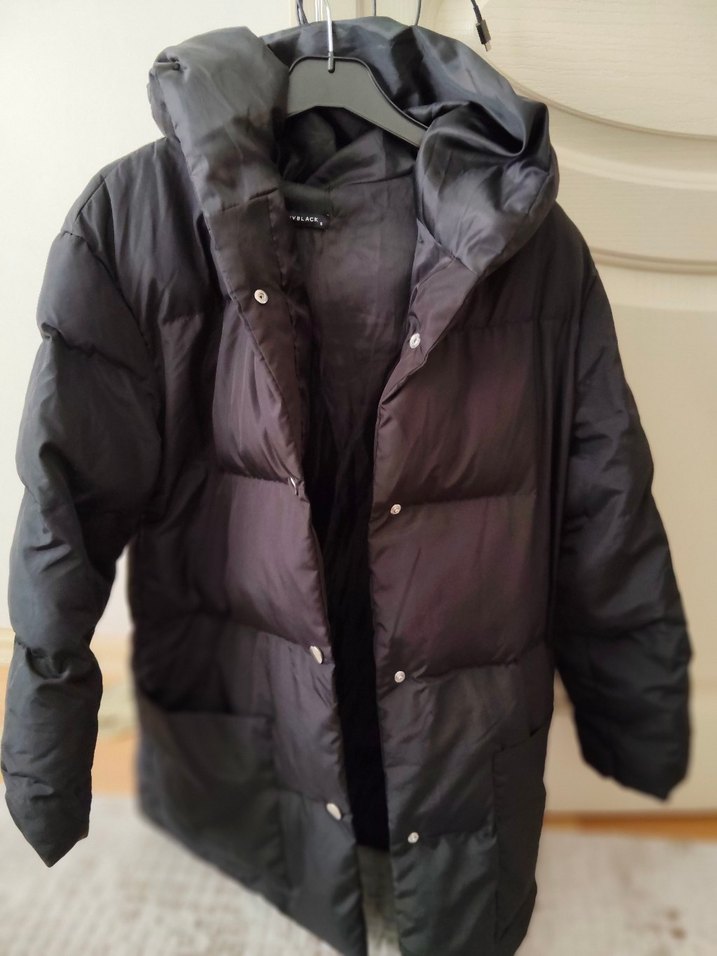 Düğmeli Siyah Kadın Kışlık Mont